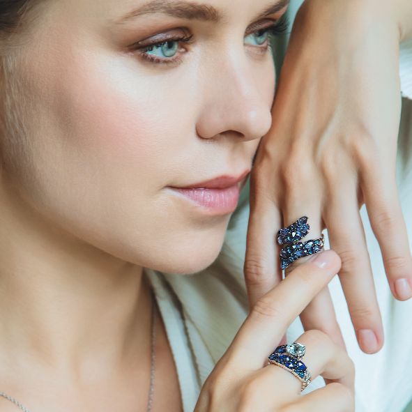 RING, WHITE GOLD, BLUE SAPPHIRES