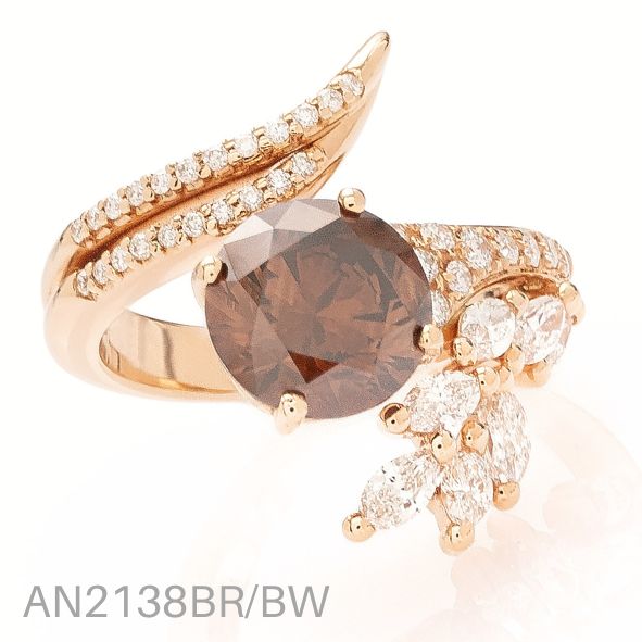 RING, ROSE GOLD, WHITE-BROWN DIAMONDS