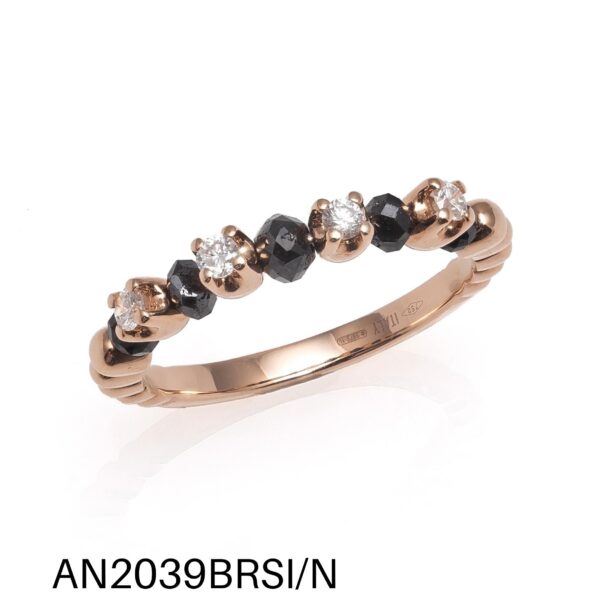RING, ROSE GOLD, WHITE-BLACK DIAMONDS