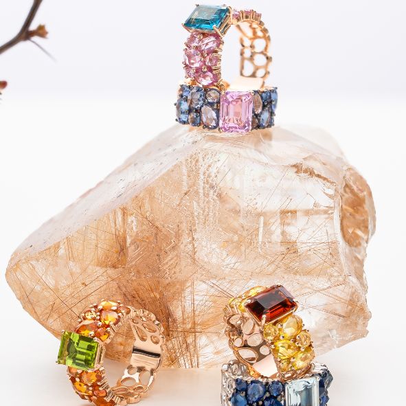 RING, ROSE GOLD, LIGHT BLUE SAPPHIRES, KUNZITE