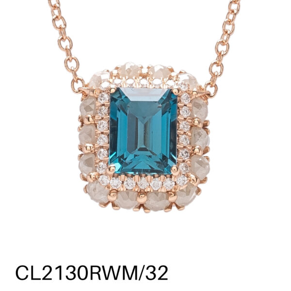 NECKLACE, ROSE GOLD, WHITE-WHITE MILKY DIAMONDS, LONDON BLUE TOPAZ