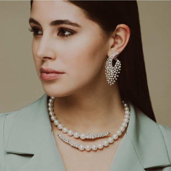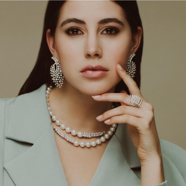 NECKLACE, ROSE GOLD, DIAMONDS, WHITE PEARLS