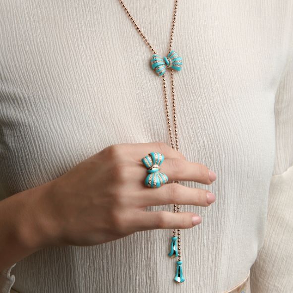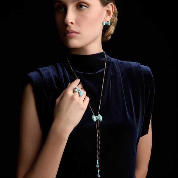NECKLACE, ROSE GOLD, DIAMONDS, TURCHESE ENAMEL