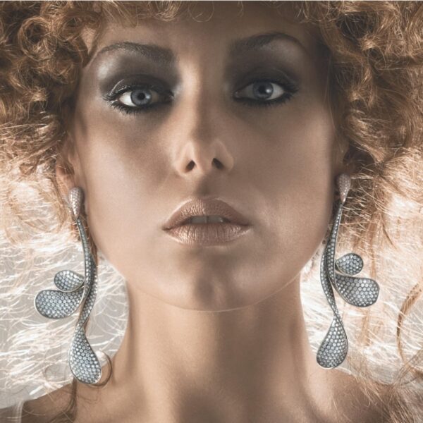 EARRINGS, ROSE GOLD, TITANIUM, DIAMONDS