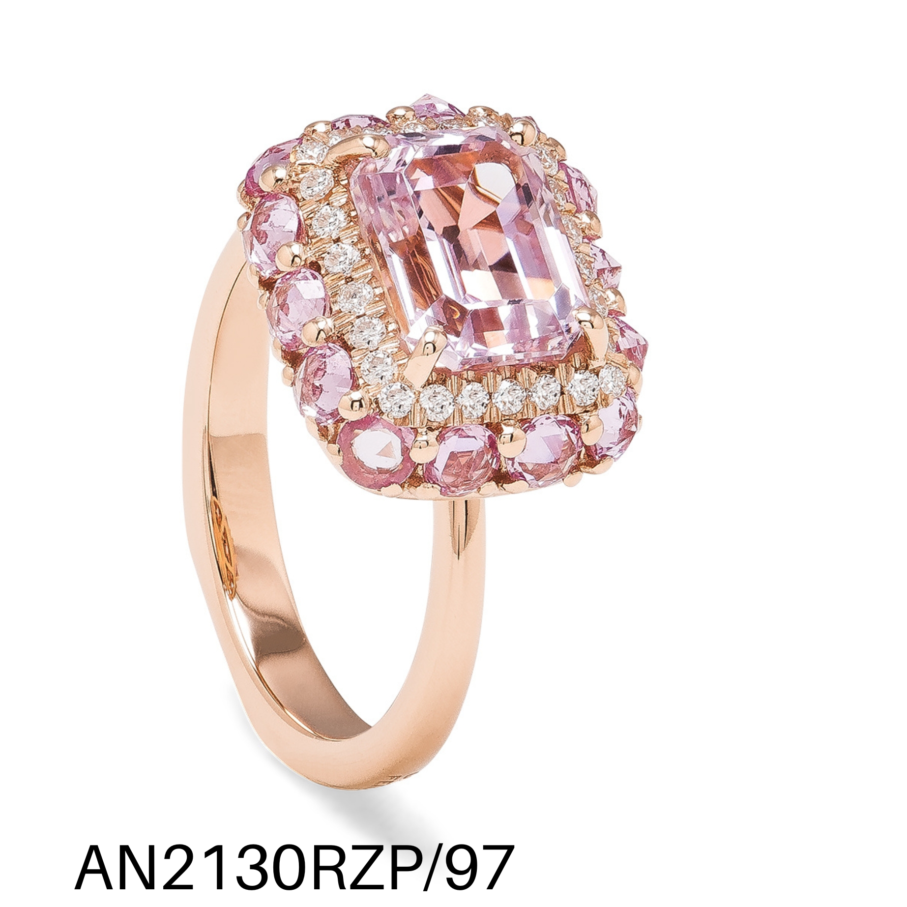 ANELLO ORO ROSA, DIAMANTI, ZAFFIRI ROSA, KUNZITE